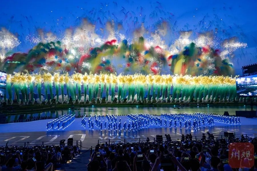 隨后,在“天府之檐”下,文體表演《錦繡之韻》、主題曲表演《友愛之聲》接續(xù)上演,將運(yùn)動(dòng)項(xiàng)目與中華文化、巴蜀元素有機(jī)結(jié)合,展示出“運(yùn)動(dòng)無(wú)限 氣象萬(wàn)千”的主題。在萬(wàn)眾期待下,世運(yùn)圣火在湖中點(diǎn)燃,以水火相生的科技創(chuàng)新美學(xué),向全世界傳遞夢(mèng)想之光。